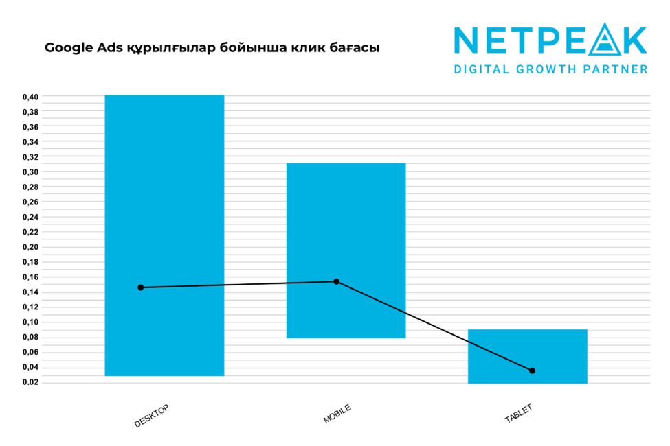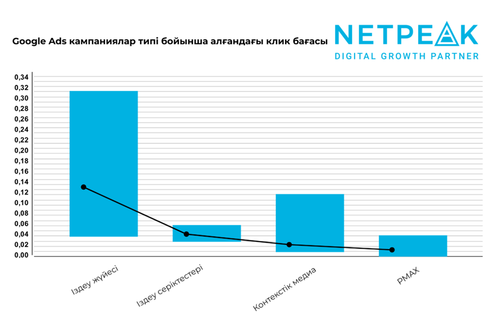 Netpeak мамандары атап өткендей, барлық талданған мәліметтер агенттіктің өз жарнамалық кампаниялары негізінде алынған. Клик бағасы жарнама сапасы мен бәсекелестік деңгейі сияқты көптеген факторларға байланысты өзгеруі мүмкін. Сондықтан сіздің жеке деректеріңіз бұл нәтижелерден айырмашылық көрсетуі ықтимал.