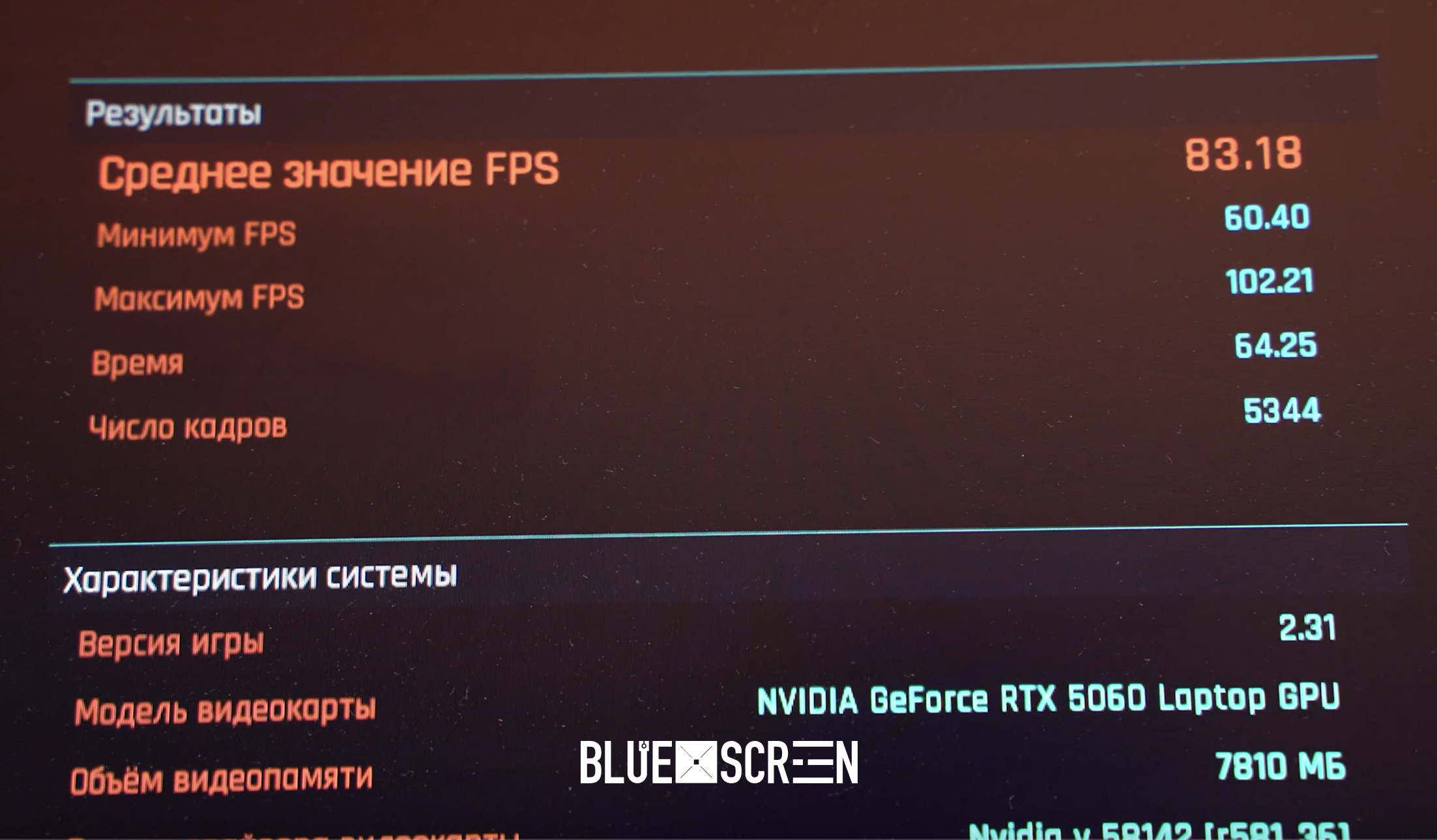 Для сетевых шутеров важнее низкие «лоу» и отзывчивость. В 1080p с «киберспортивным» набором (низкие тени/эффекты, текстуры Medium, DLSS Quality) ноут держит от 100 до 120 FPS — именно то, что нужно для контроля отдачи и трекинга