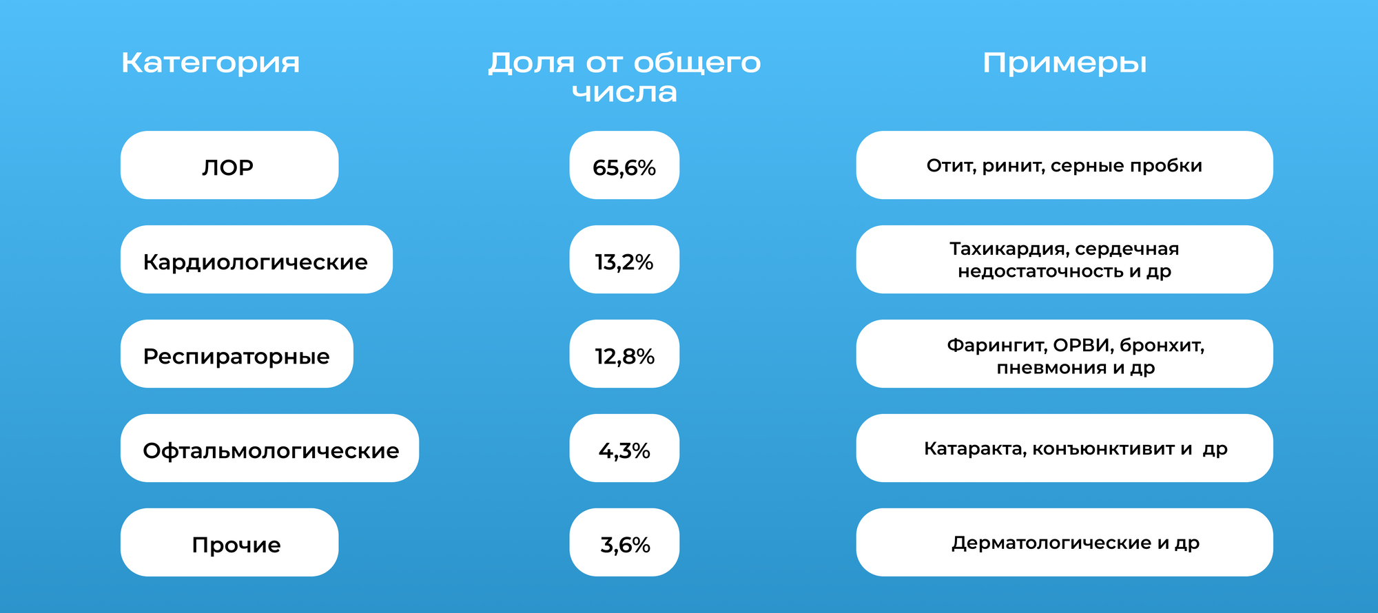 В январе-марте преобладали ЛОР-обследования и аускультация легких, а в мае нагрузка сместилась на кардиологию, при этом доля кардиологических обследований выросла на 32%. ПАК ДНД доказал свою универсальность, сохраняя актуальность как при инфекционной, так и при соматической патологиях.