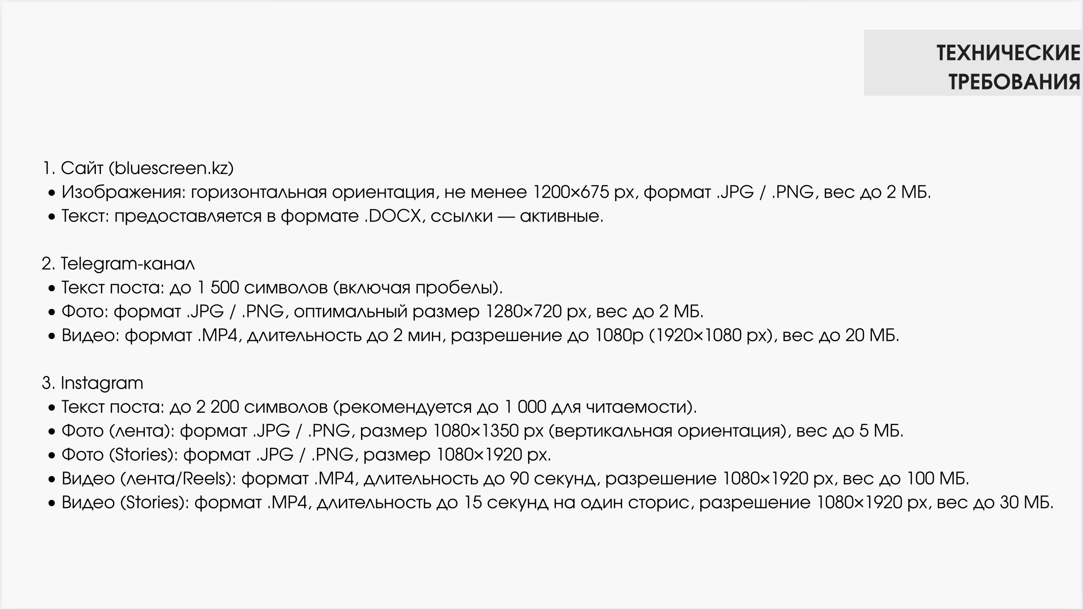 ✉️ По вопросам индивидуальных условий и спецпроектов пишите на: a.melnikova@bluescreen.kz