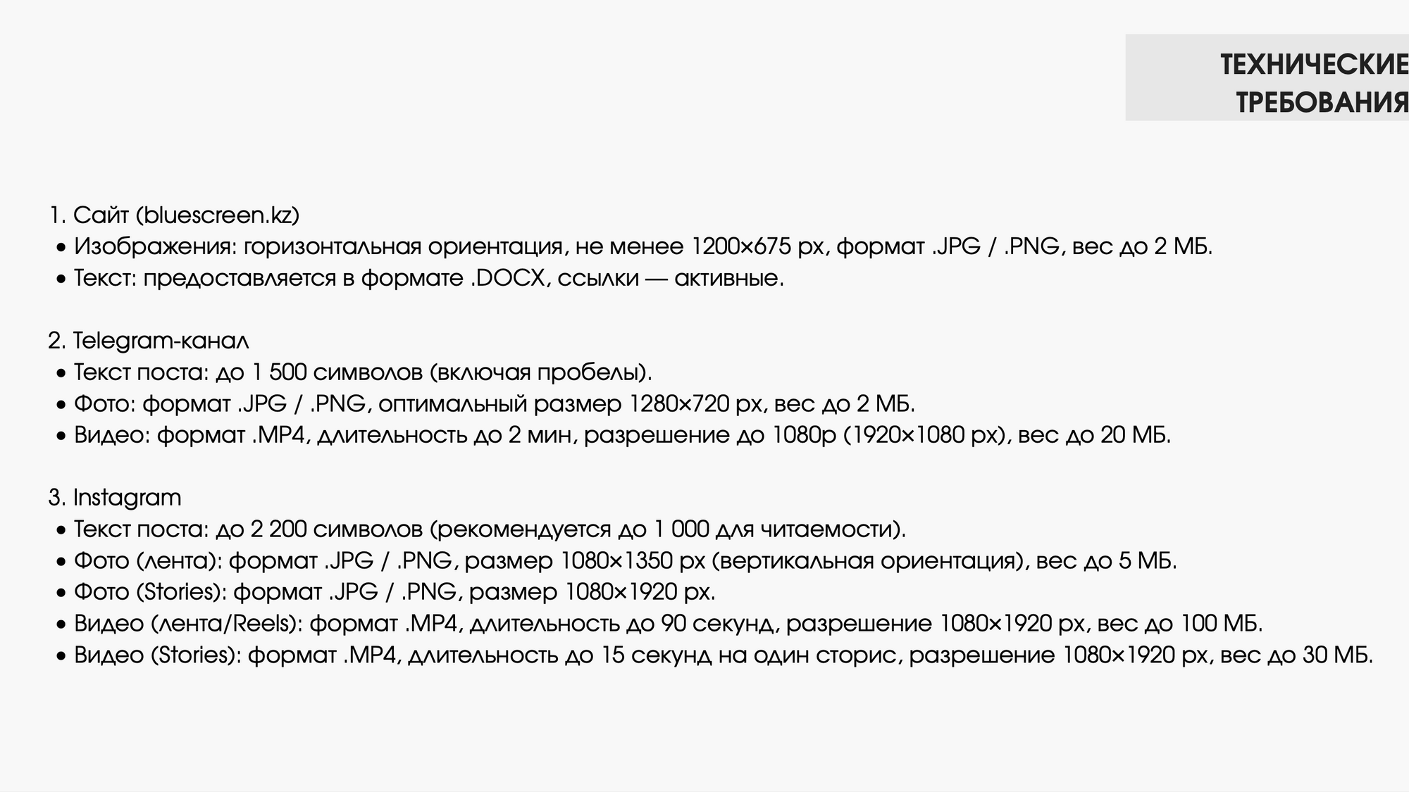 ✉️ По вопросам индивидуальных условий и спецпроектов пишите на: a.melnikova@bluescreen.kz